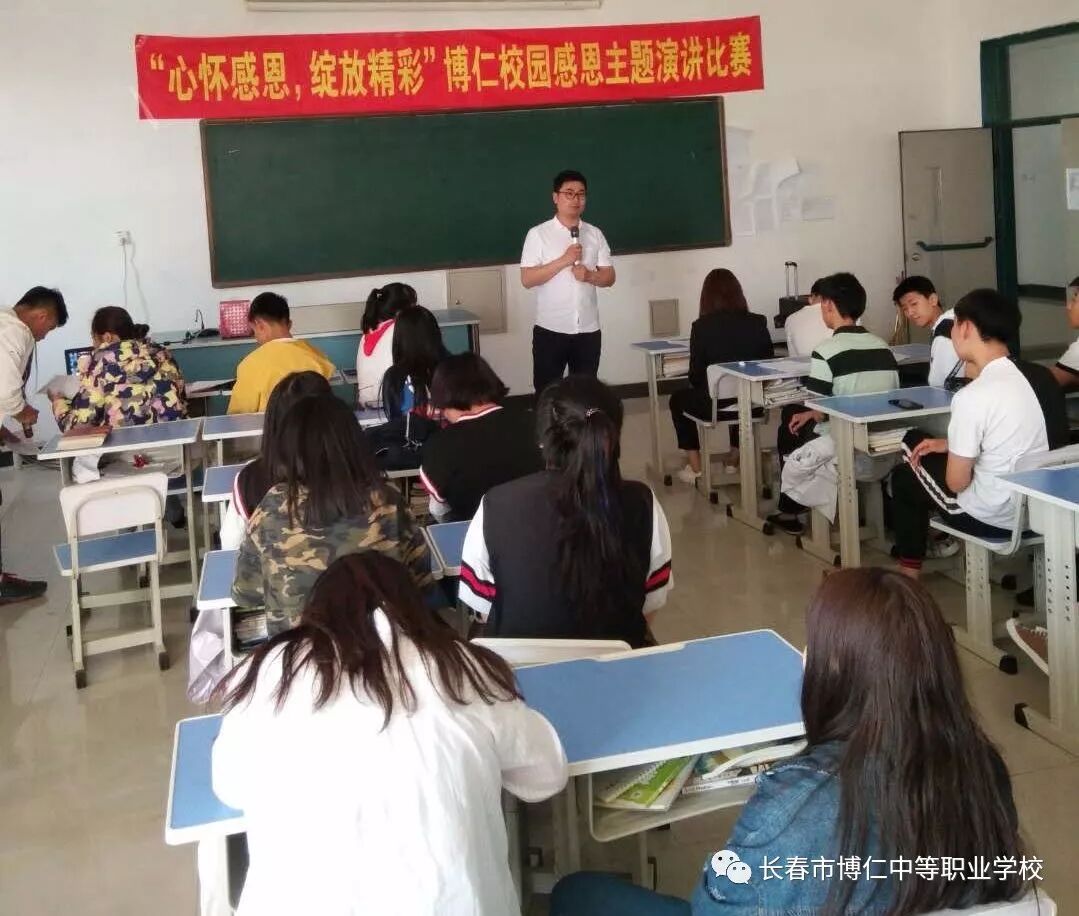 长春市博仁中等职业学校于近日举行了“心怀感恩,绽放精彩”博仁校园感恩主题演讲比赛,每位选手精神抖擞走上讲台,用真挚的情感和铿锵有力的语言,阐述自己对于感恩、梦想的想法。