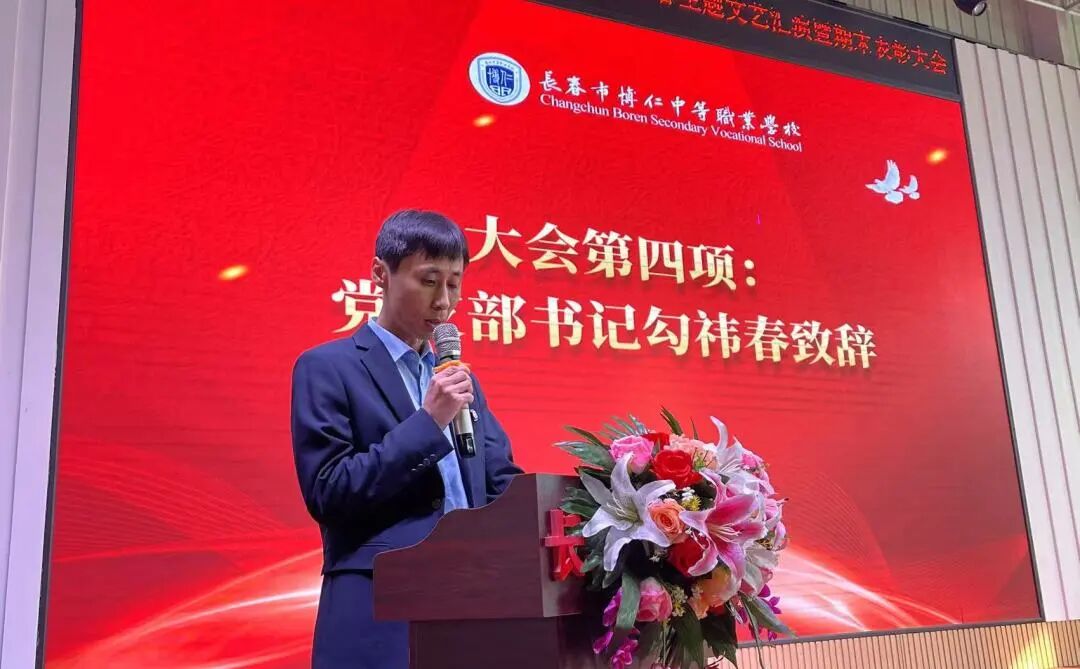 随后,党支部书记勾祎春在致辞中全面回顾了本学期学校在教育教学、学生培养、校园文化建设等方面取得的丰硕成果,向辛勤耕耘的教职工和刻苦奋进的同学们致以诚挚的感谢与节日的祝福。同时,他勉励全体博仁师生以先进为标杆,以梦想为航向,在新的一年里凝心聚力、锐意进取,共同书写学校高质量发展的崭新篇章。
